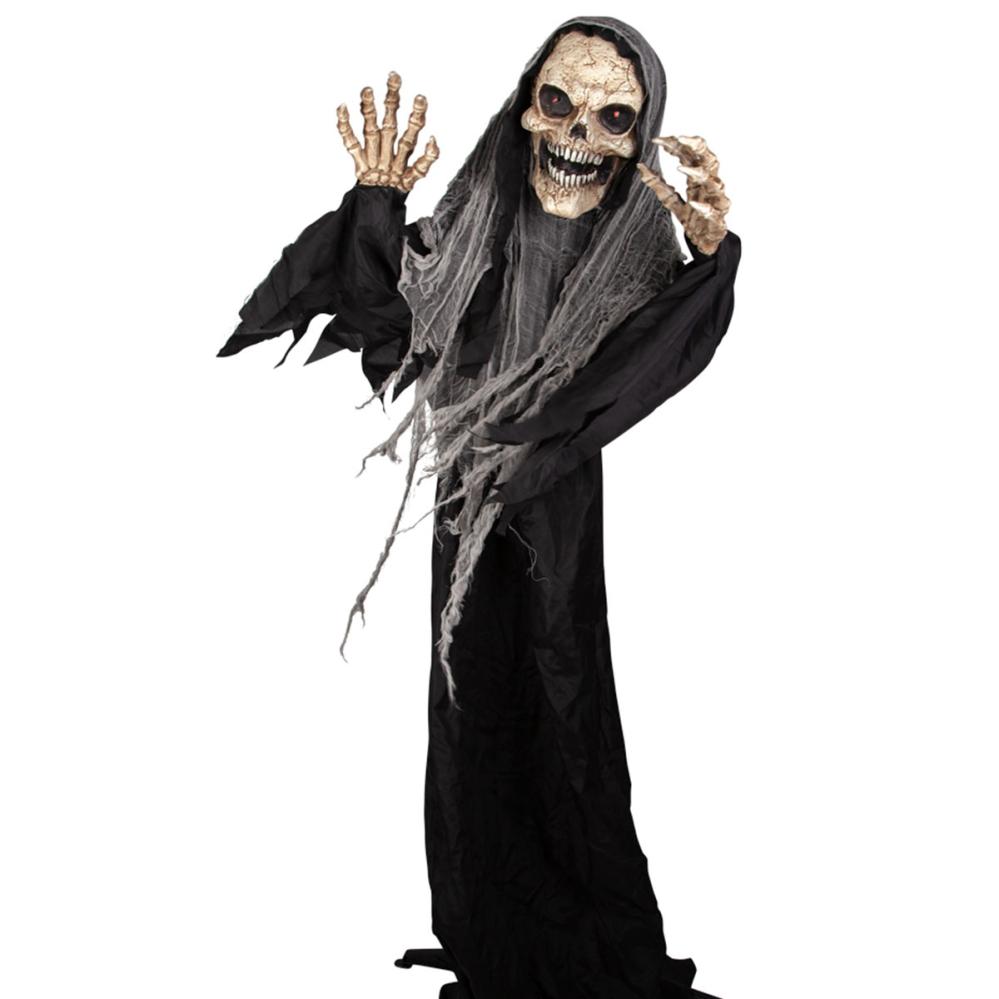 Skrem vettet av gjestene med denne animatroniske Halloween-dekorasjonen i form av Mannen med ljåen. En perfekt Halloween rekvisitt og halloweendekorasjon med lys, lyd og bevegelse for maksimal spøkelsesstemning.