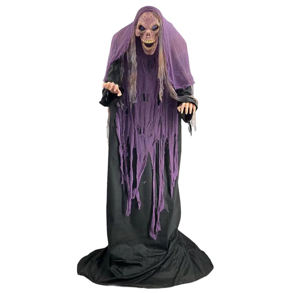 Denne halloweenrekvisitten er en animert figur som perfekt fanger essensen av skrekk med sitt bevegelige skjelett. Opplev hvordan dette skumle skjelettet skaper stemning med sine imponerende animasjoner og spøkelsesaktige detaljer for en uforglemmelig opplevelse!