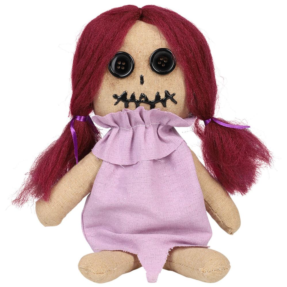 Animert Skummel Dukke Prop er en batteridrevet halloweenfigur med bevegelses- og lydeffekter som forestiller en skremmende dukke. Dukken har svarte knappeøyne og vinrødt hår og bærer en rosa kjole. Den er utstyrt med lydsensor og ved aktivering begynner dukken å gråte samtidig som den beveger seg opp og ned.