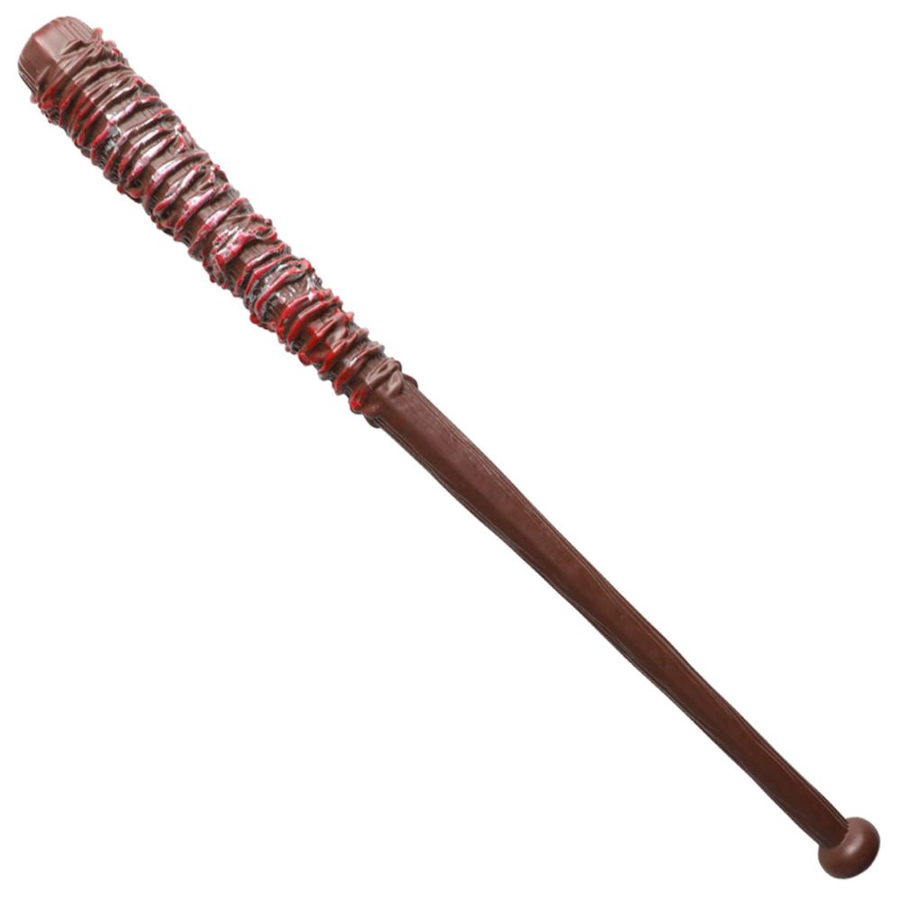 Balltre med Piggtråd 61 cm er et brunt balltre i plast med sølvfarget motiv av piggtråd med røde detaljer som ligner blod.