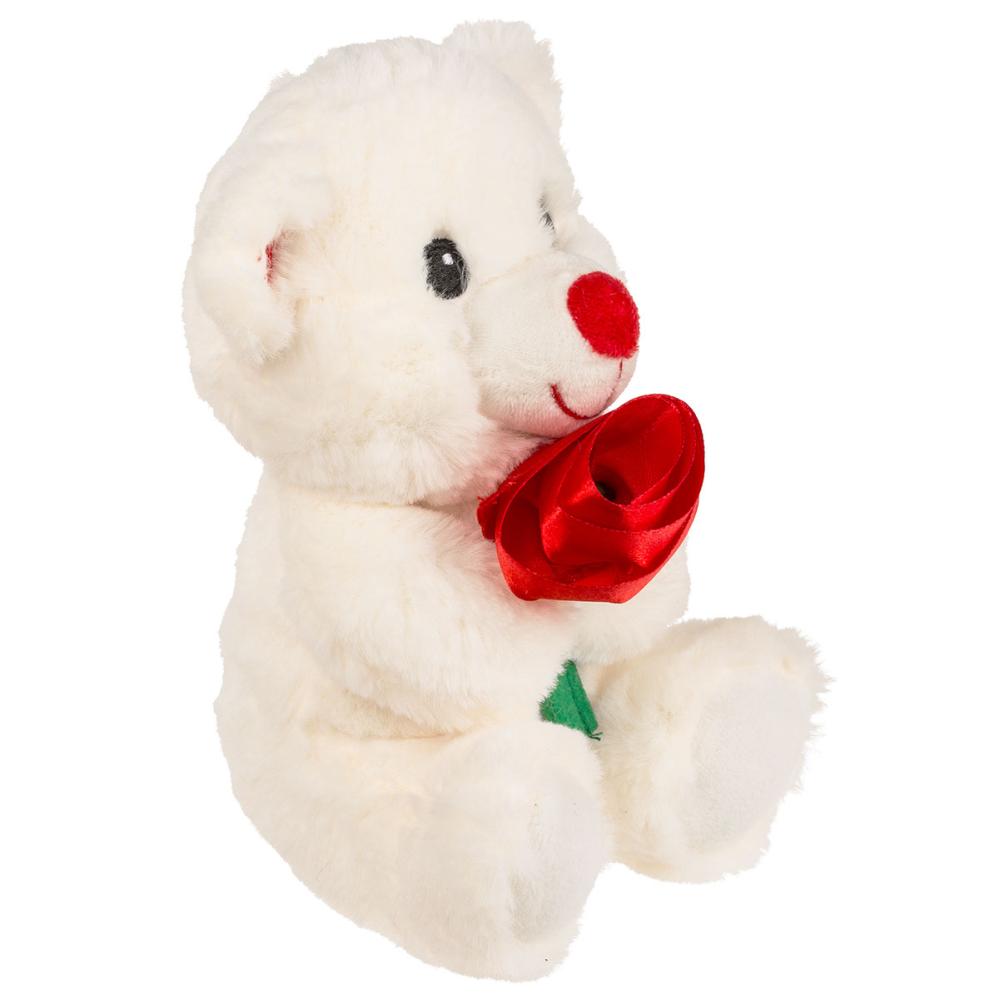 Bamse med Rose 18 cm er en myk bamse som holder en rød rose. Den finnes i fargene kremhvit og beige, men selges usortert og stykkvis så det blir en overraskelse hvilken farge din bamse har.