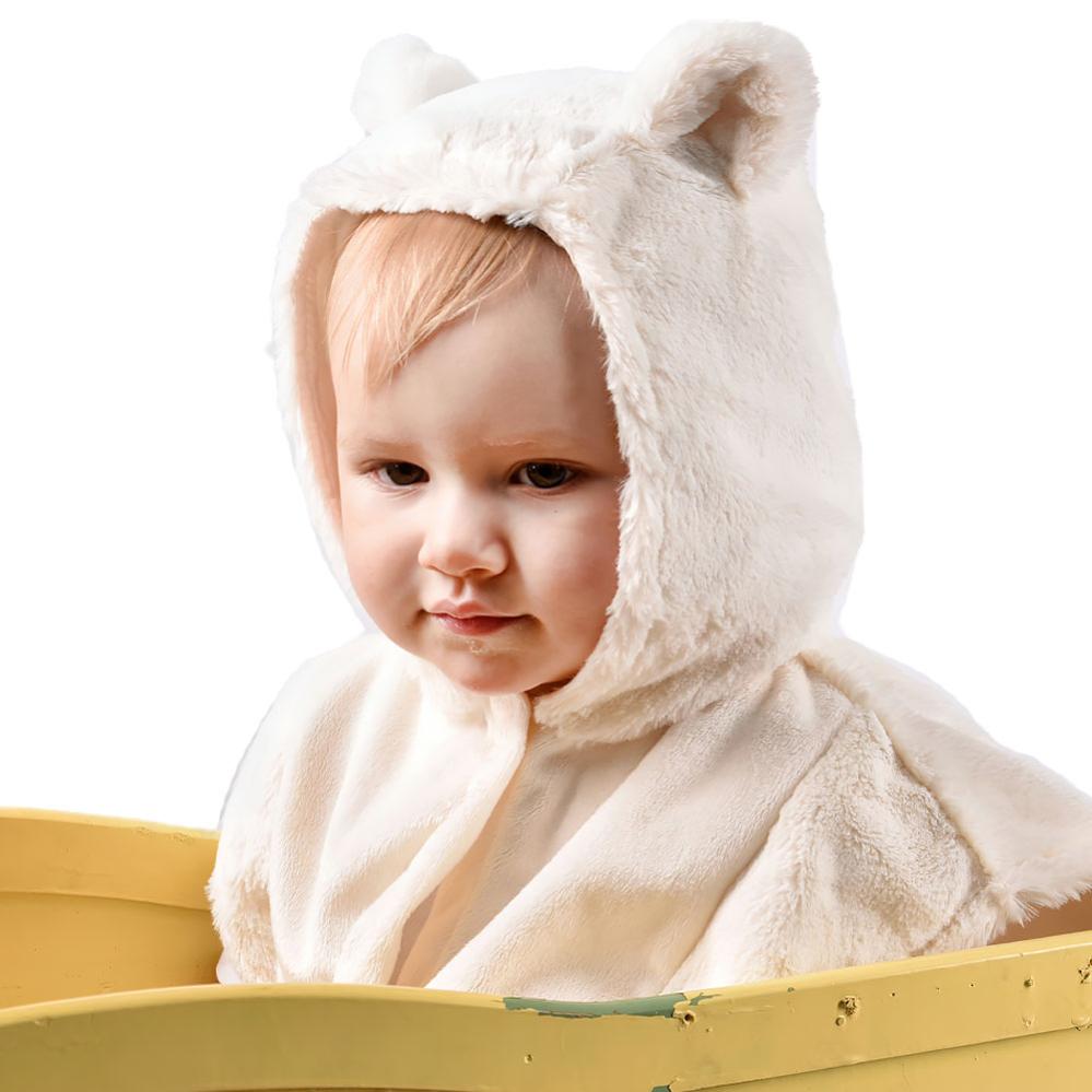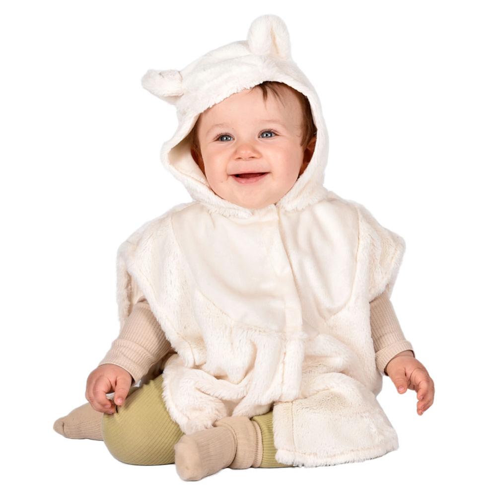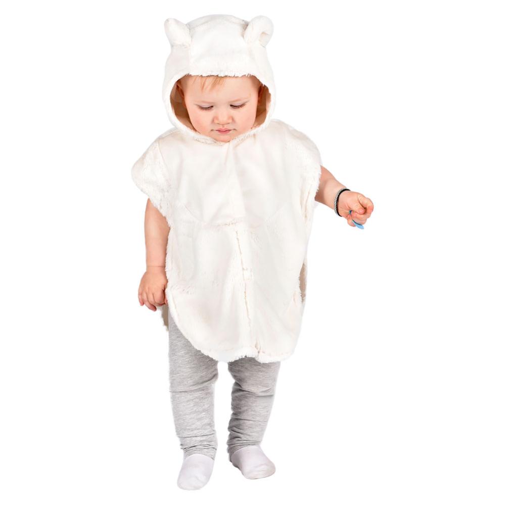 Bjørnekostyme Hvitt Barn består av en hvit kappe for barn med hette med ører. Kostymet åpnes og lukkes enkelt med borrelås. Kostymet er laget av polyester og er i størrelsen one size.