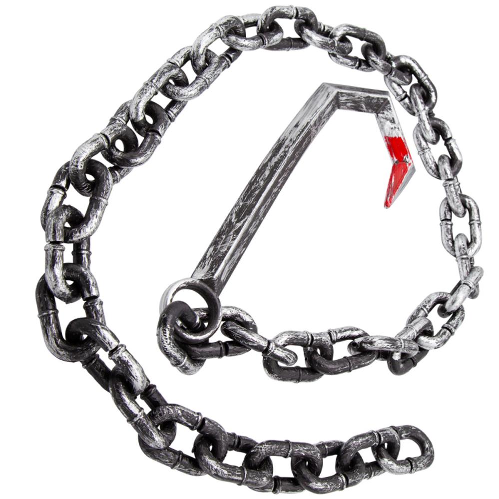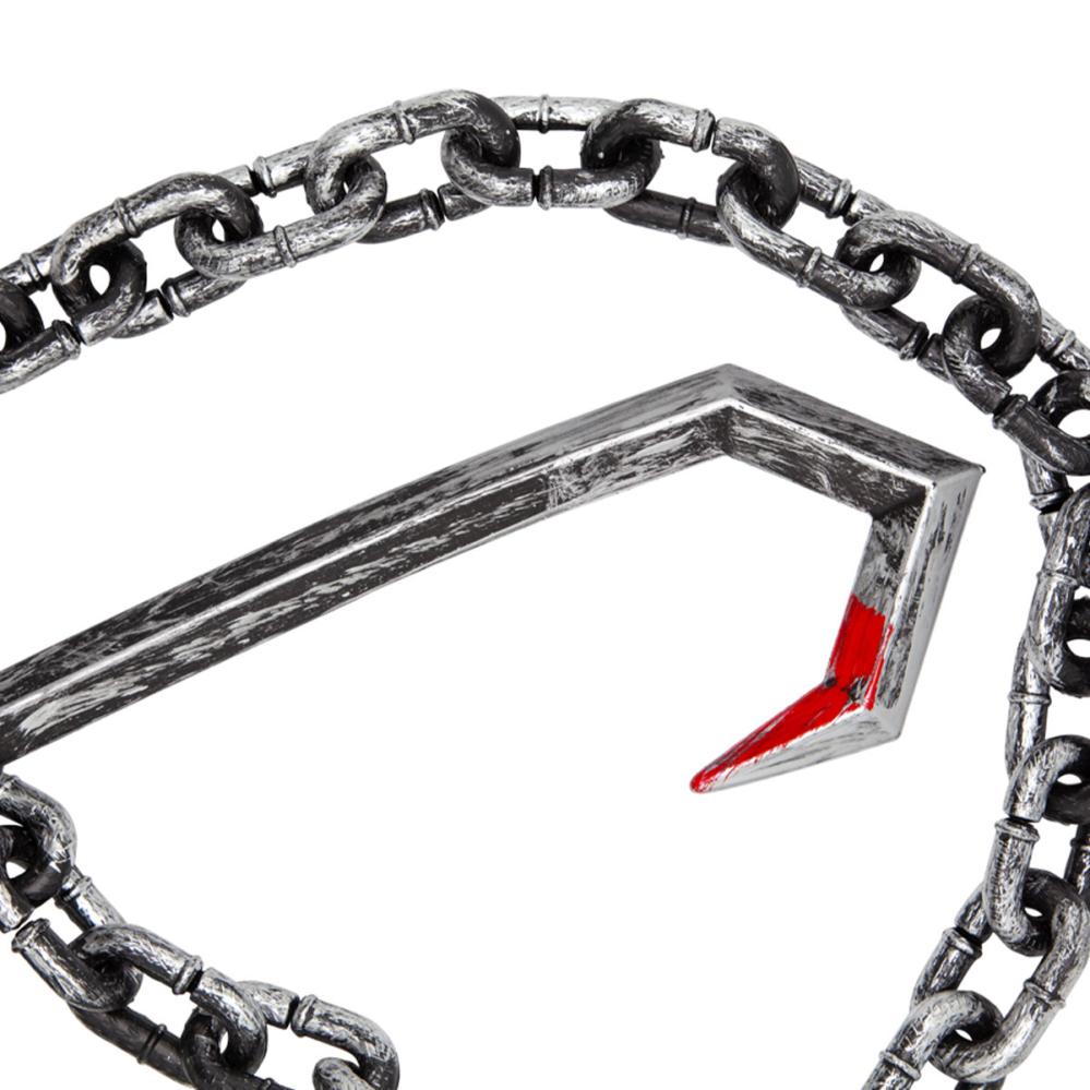 Blodig Kjøttkrok med Kjede er et kostymetilbehør i svart og sølv i form av en blodig kjøttkrok med en kjede.