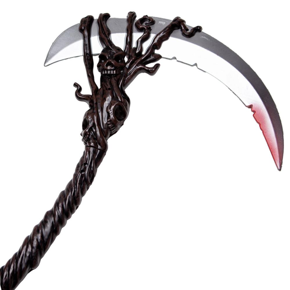 Blodig Ljå Deluxe omfatter en ekstra detaljert ljå med et krokete skaft, blod på det sølvfargede bladet og motiv av hodeskaller. Ljåen kommer i fire deler for enklere oppbevaring og settes enkelt sammen og tas fra hverandre uten problemer.