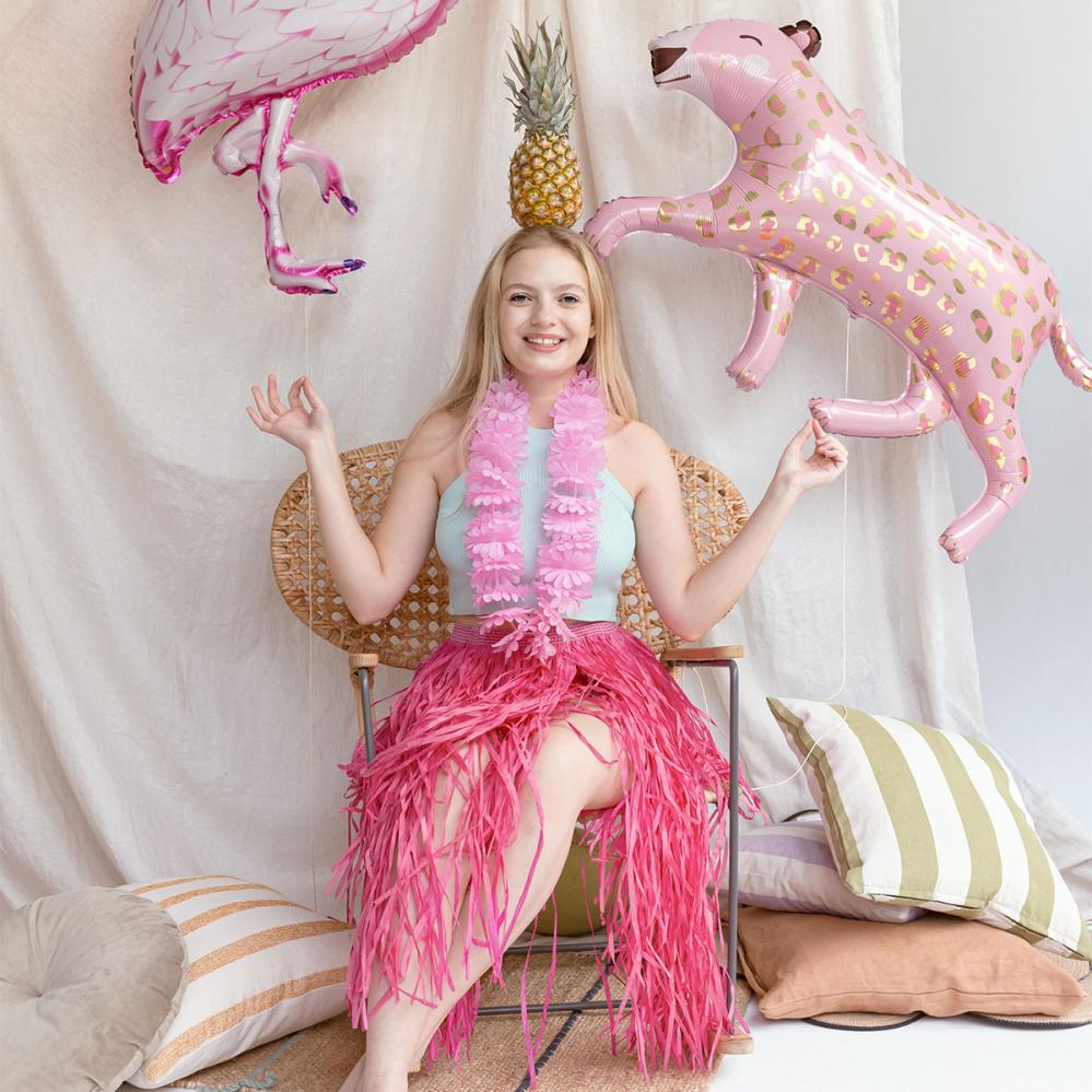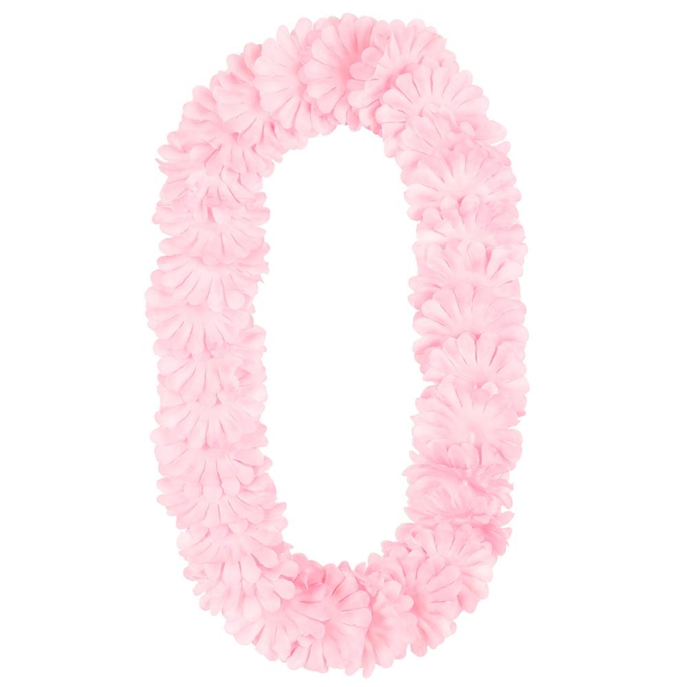 Denne blomsterkransen skaper en følelse av sommer med sine fargerike blomster. En krans pyntet med blomster i en lys rosa nyanse gir enhver fest et tropisk innslag. Den som bærer denne hawaiikransen kan føle seg klar for et strandtema eller en kostymefest.