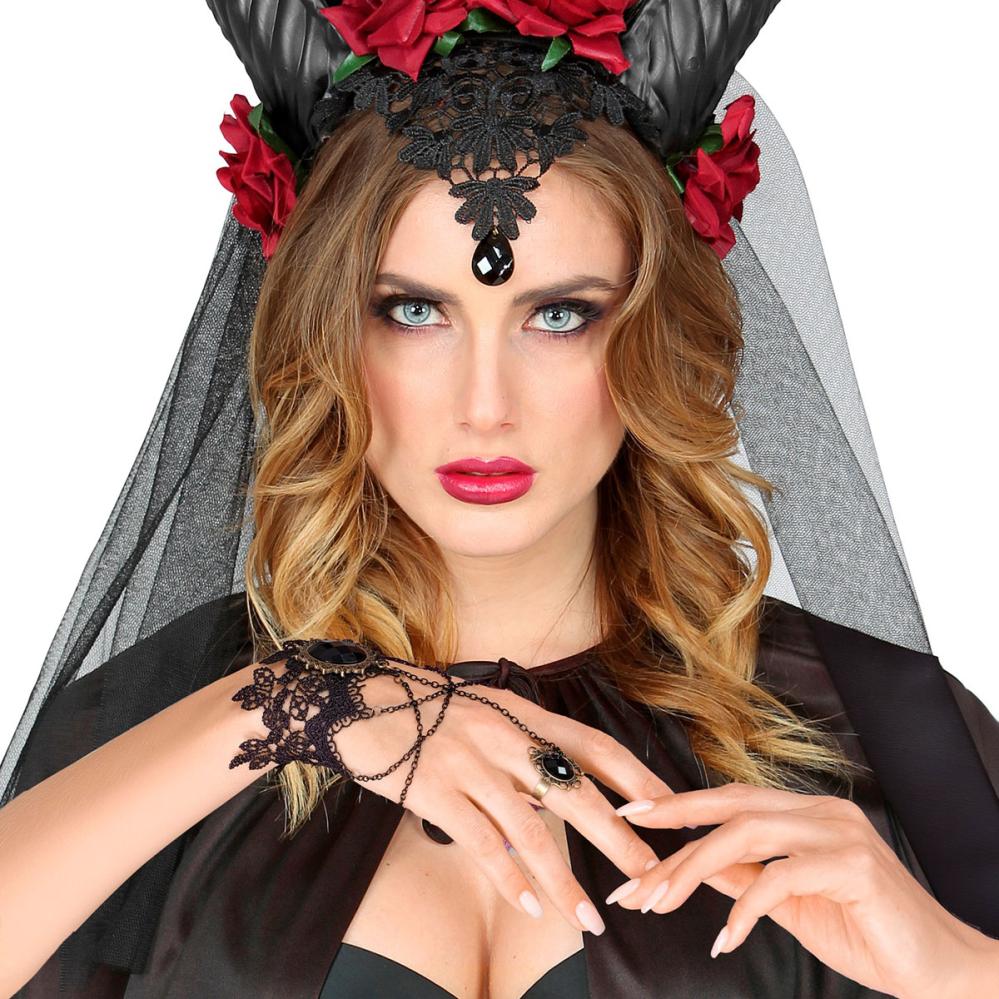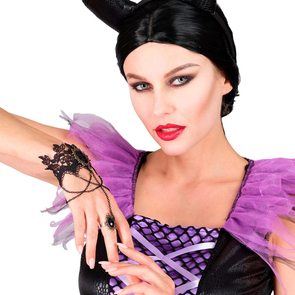 Dette blondearmbåndet har justerbar kjede og lav vekt for behagelig bruk hele kvelden. Til maskerade under halloween passer et armbånd med ring som kompletterer utkledningen på en enkel måte.