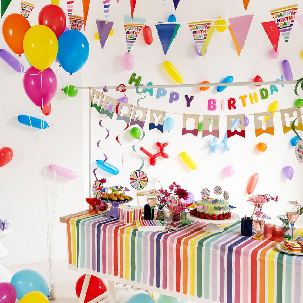 Sett farge på festen med en happy birthday girlander som liver opp hvert rom. Det er en perfekt hengende dekorasjon som ingen bursdag er komplett uten, og et selvfølgelig innslag blant dine festdekorasjoner.