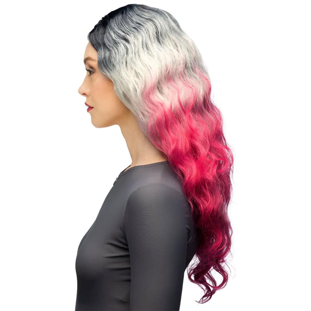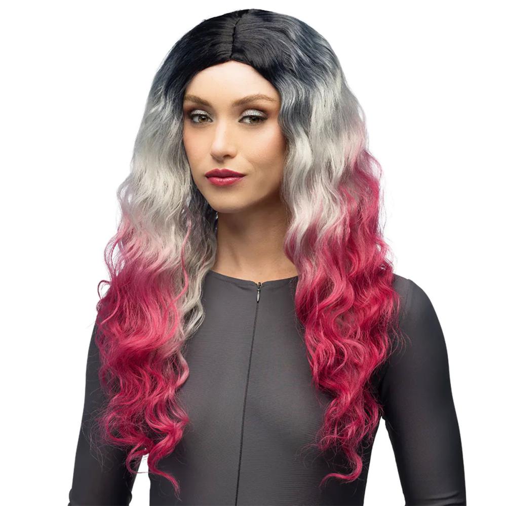 Gjør inntrykk med denne ombre-parykken i svart, grått og rosa som passer perfekt som festparykk eller til cosplay. Den lange bølgete stilen og midtskillen gir et stilig og trendy utseende.