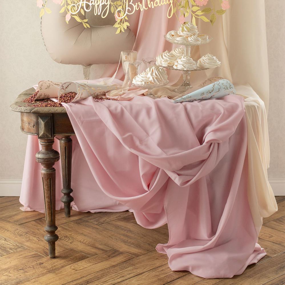 Til en babyshower passer borddekking med en rektangulær bordduk i rosa perfekt, ettersom den skaper en myk og festlig stemning. Den gammelrosa nyansen bidrar til en varm og innbydende følelse ved bordet.