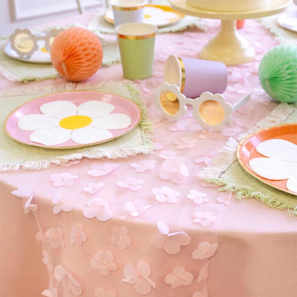 Enten det er midtsommer eller bryllup skaper en hvit løper med blomster en festlig stemning ved borddekkingen. Ved et bryllup passer en tynn hvit bordløper med netting og blomster utmerket for borddekkingen din.