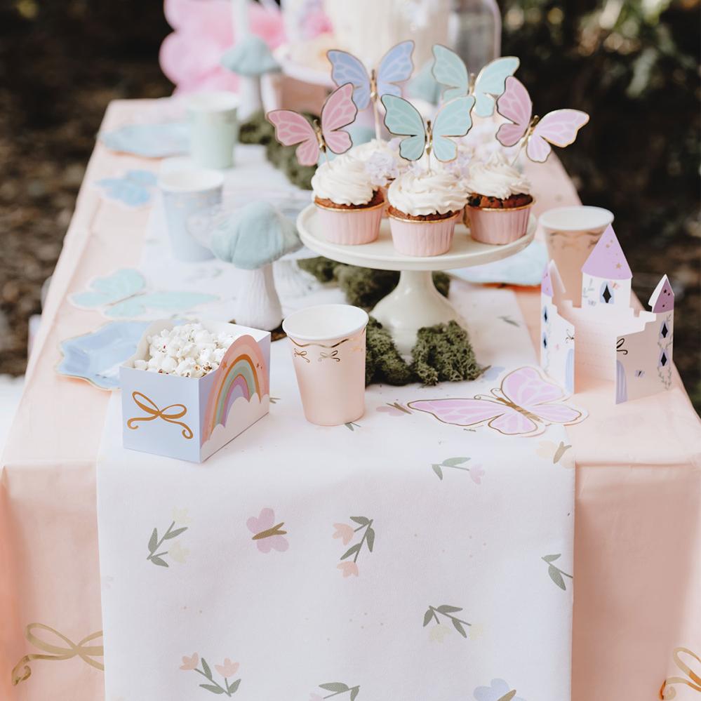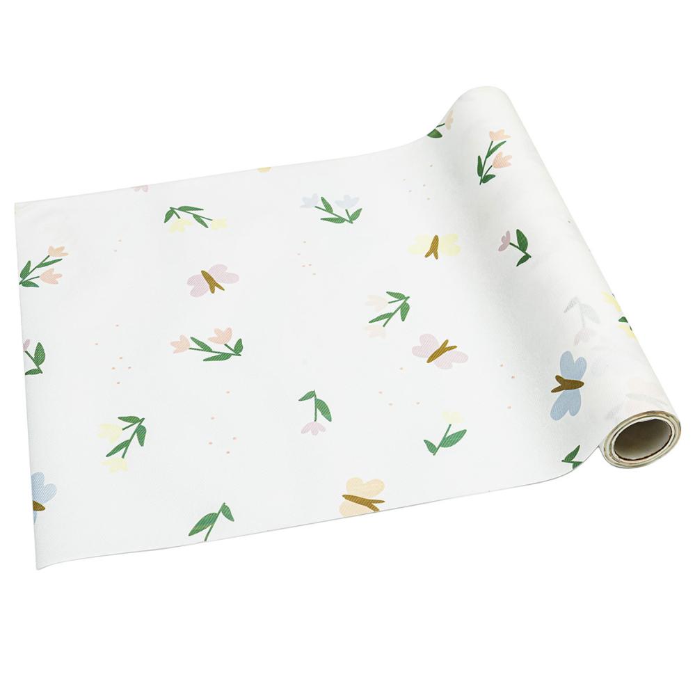 En bordløper med blomster gir en festlig følelse når den brukes til borddekking. Den blomstrete løperen skaper en stilfull borddekking for alle anledninger. Til en sommerfuglfest passer den utmerket med sine fargerike detaljer.