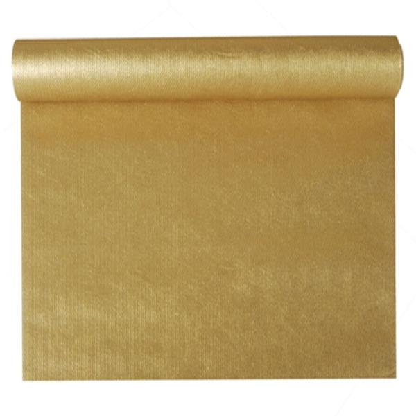 Bordløper Non Woven Gull består av en gyllen bordløper av stofflignende materiale på rull.