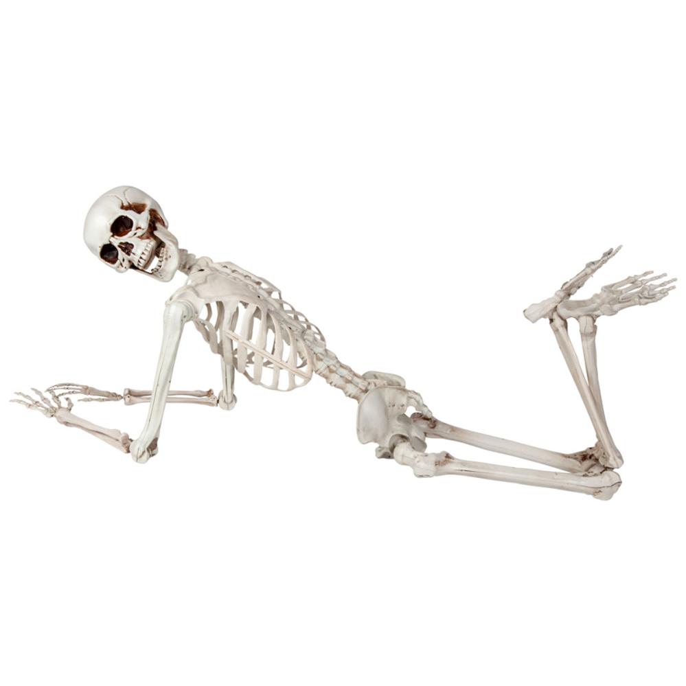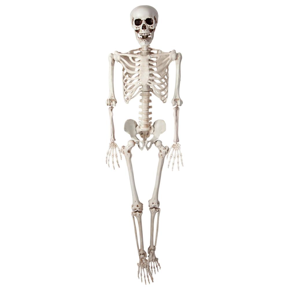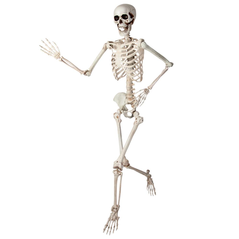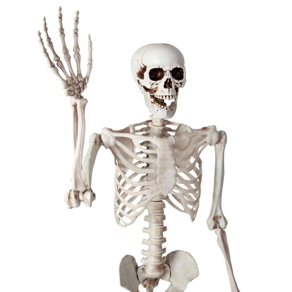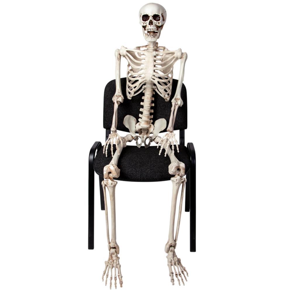 Dette skjelettet til Halloween er et stort virkelighetstro skjelett i naturlig størrelse som du enkelt kan stille i ulike positurer takket være bevegelige ledd. Det er et gigantisk skjelett som garantert gir riktig effekt i din skrekkdekorasjon.