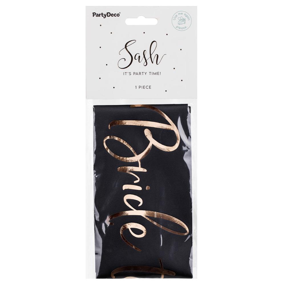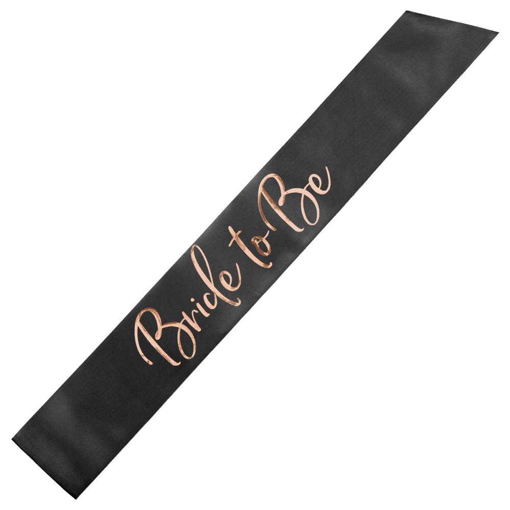 Bride to Be Ordensbånd Svart består av et svart ordensbånd med teksten 'Bride to Be' i roségull.