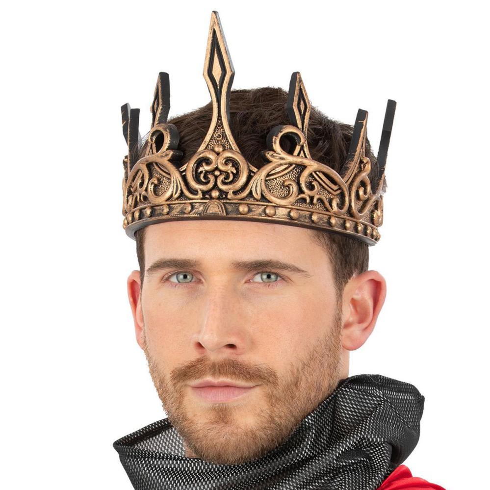 Bronsefarget Krone omfatter en krone med design for et historisk og vikingtidsinspirert utseende. Kronen er laget av lett og slitesterkt hardskum og lukkes enkelt med det justerbare borrelåsbåndet bak for å passe de fleste voksne.