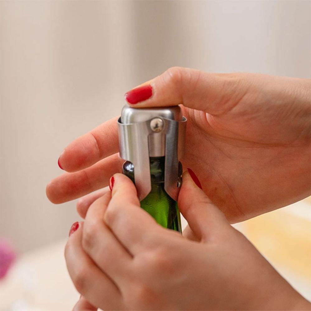 Oppbevar drikken frisk med denne champagnekorken som bevarer boblene. Denne flaskekorken har en smart låsefunksjon som forhindrer lekkasje. Perfekt også som vinkork for å tette åpnede flasker og bevare smaken lenger.