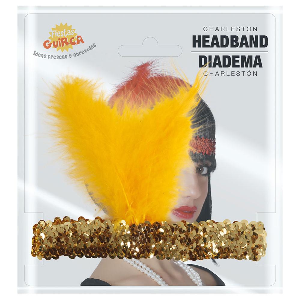 Et charleston hårbånd som fanger følelsen av 20-talls glamour, kombinerer fjær og paljetter i gull, noe som gjør hver maskerade minneverdig. Kjenn deg som om du danser inn i en tid med jazz og eleganse så fort du tar på deg dette tilbehøret.