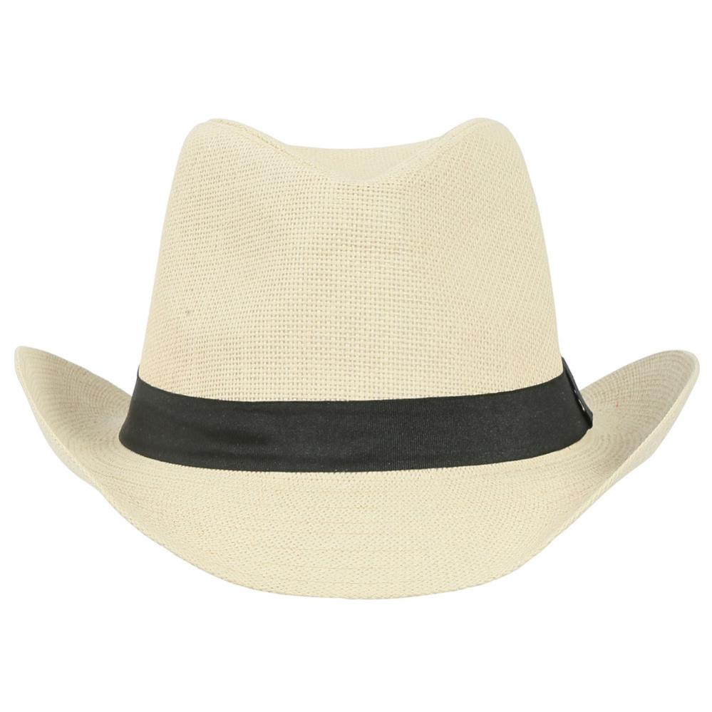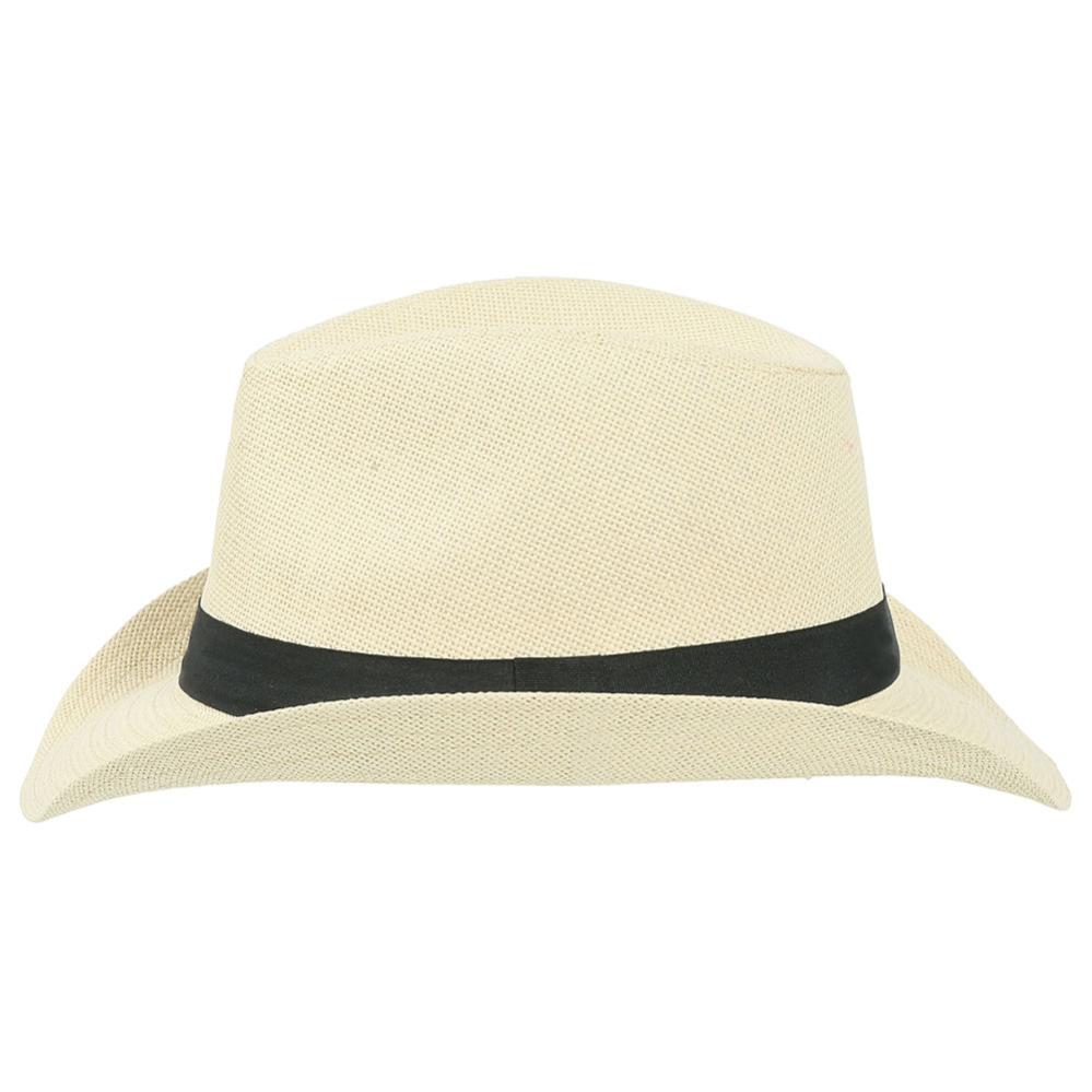 Cowboyhatt Lysebeige omfatter en lysebeige cowboyhatt, dekorert med et svart bånd rundt om.