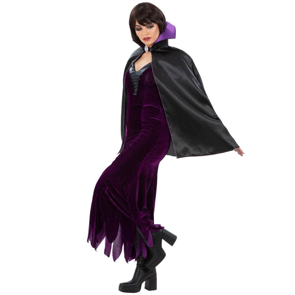 Denne vampyrkappen er et stilsikkert kostymetilbehør for deg som vil skille deg ut på festen. Den lilla kragen og den sølvfargede brosjen gir vampyrcapen din til Halloween et elegant og mystisk preg. Perfekt til Snøhvit maskerade eller heks i Snøhvit kostyme.