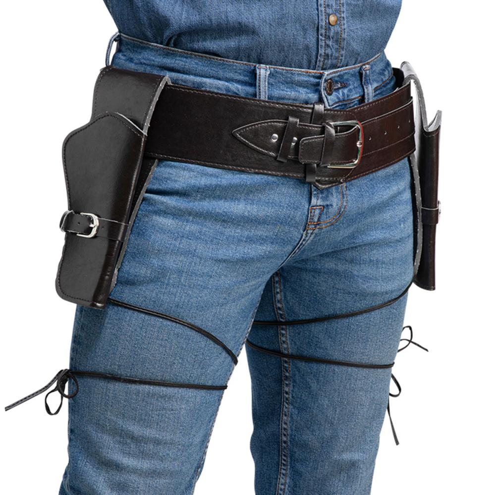 Når noen vil leve ut drømmene sine om ville vesten på kostymefest eller til halloween, er det et hylster med et belte i cowboystil som løfter hele utkledningen. Dette mørkebrune dobbelthylsteret passer virkelig ingen ringere enn festens egen sheriff.