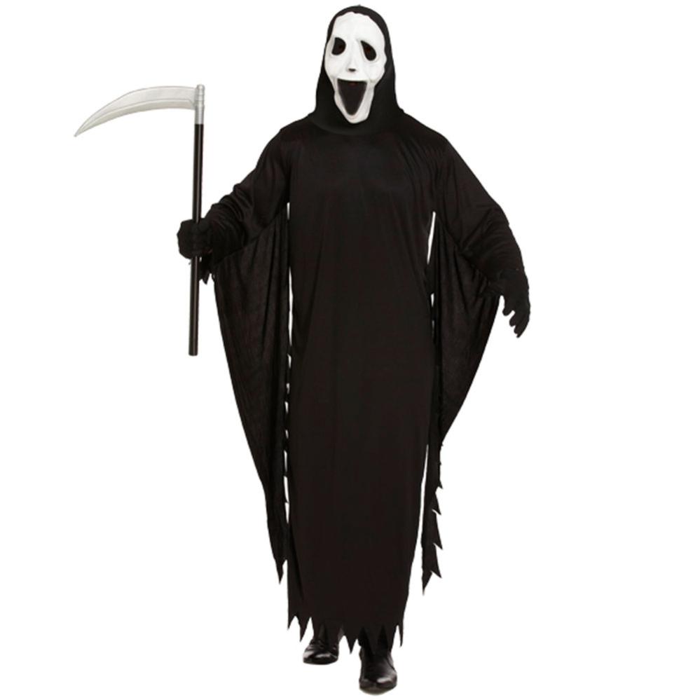 Skrem vettet av folk på festen med denne Halloweenkostymen som minner om den ikoniske Scream-drakten. En klassisk liemannkostyme blandet med et spøkelseskostyme, skremmende nok til å få folk til å rygge unna. Perfekt for deg som vil kle deg ut som Ghostface eller skape en uhyggelig heksemaskerade-look.