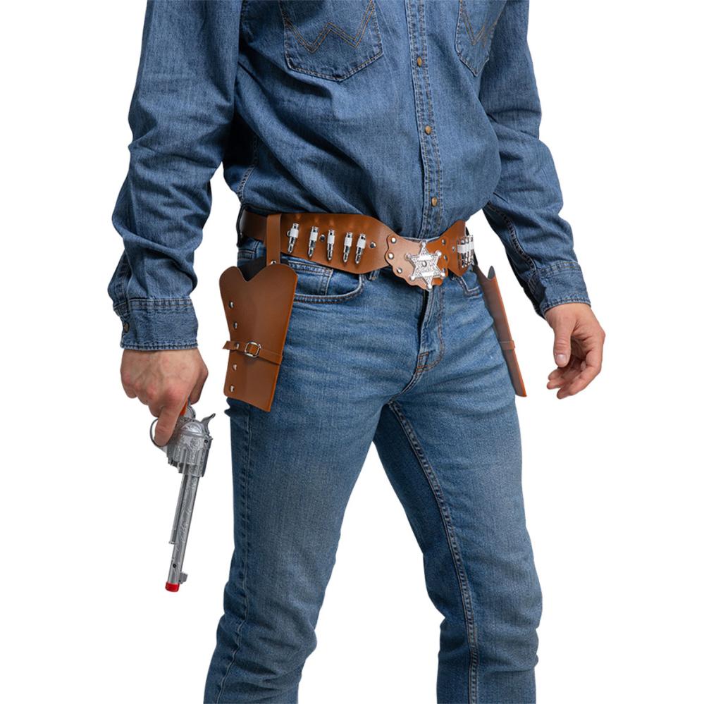 Når en kostymefest eller halloween med cowboy som tema nærmer seg, blir beltet med et hylster et selvsagt tilbehør. Følelsen blir komplett med denne accessoiren som passer både store og små som liker eventyr i ville vesten.
