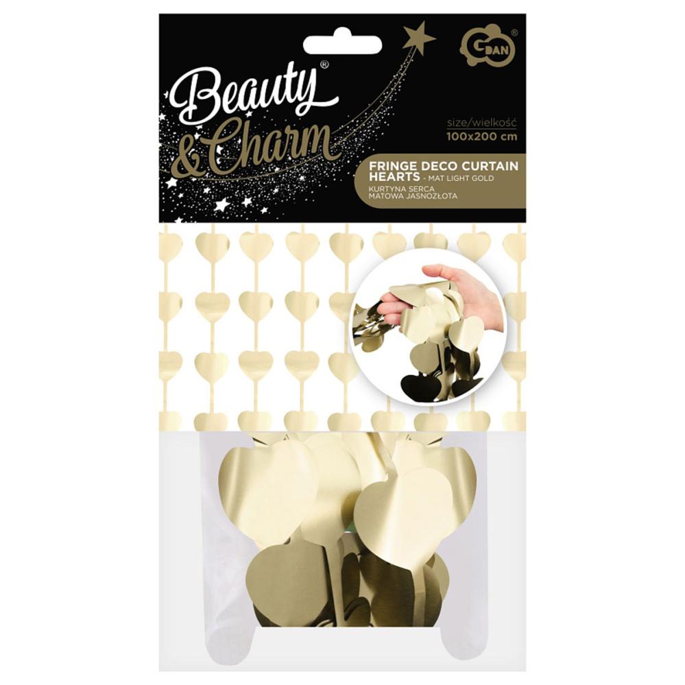 Dørforheng Hjerter Matt Lysgull er et dørforheng med hengende hjerter i matt lysgull.