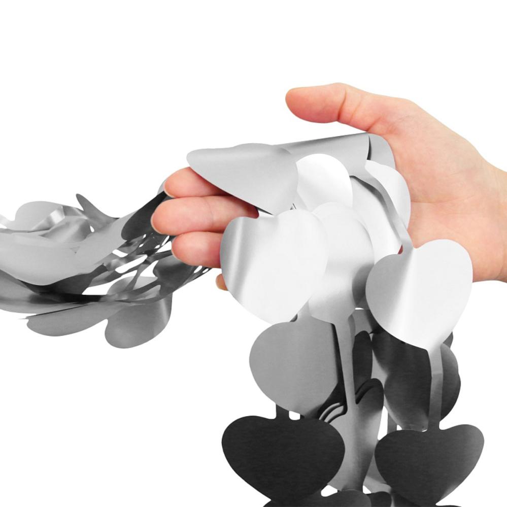 Dørforheng Hjerter Matt Sølv er et dørforheng med hengende hjerter i matt sølv.