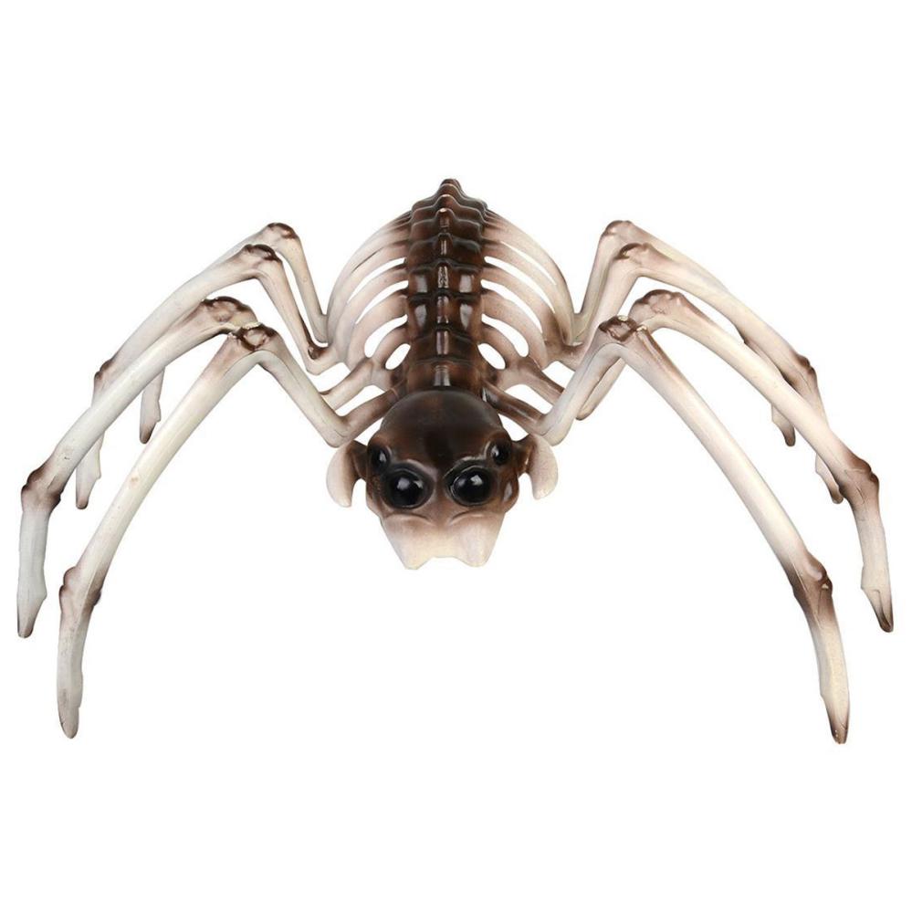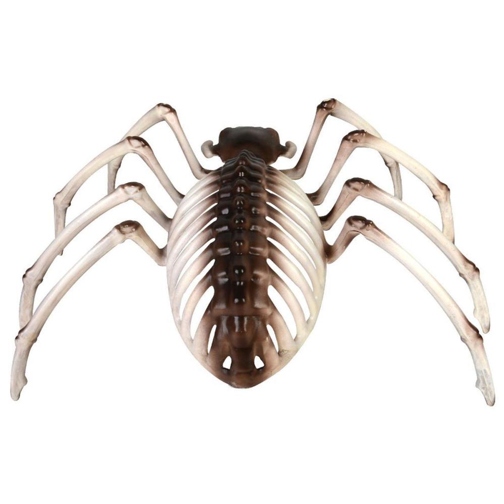 Edderkoppskjelett Dekorasjon er en halloweendekorasjon i form av et stort hvitt edderkoppskjelett med brune og grå detaljer. Edderkoppens kropp er laget av plast og den har et lateksovertrekk over hodet. OBS! Dette er kun en dekorasjon og ikke en leke.