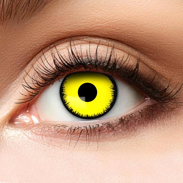 Usikker på hvordan du skal få til den ultimate halloweenlooken? Bruk disse fargede crazy linsene i gult og skap umiddelbart et virkelig skummelt utseende! Skremmende gule halloweenlinser med svarte konturer som uten tvil vil gjøre deg klar for skrekkfest. Kombiner dem med passende sminke og kostyme for en komplett og virkelig grøssende antrekk!
