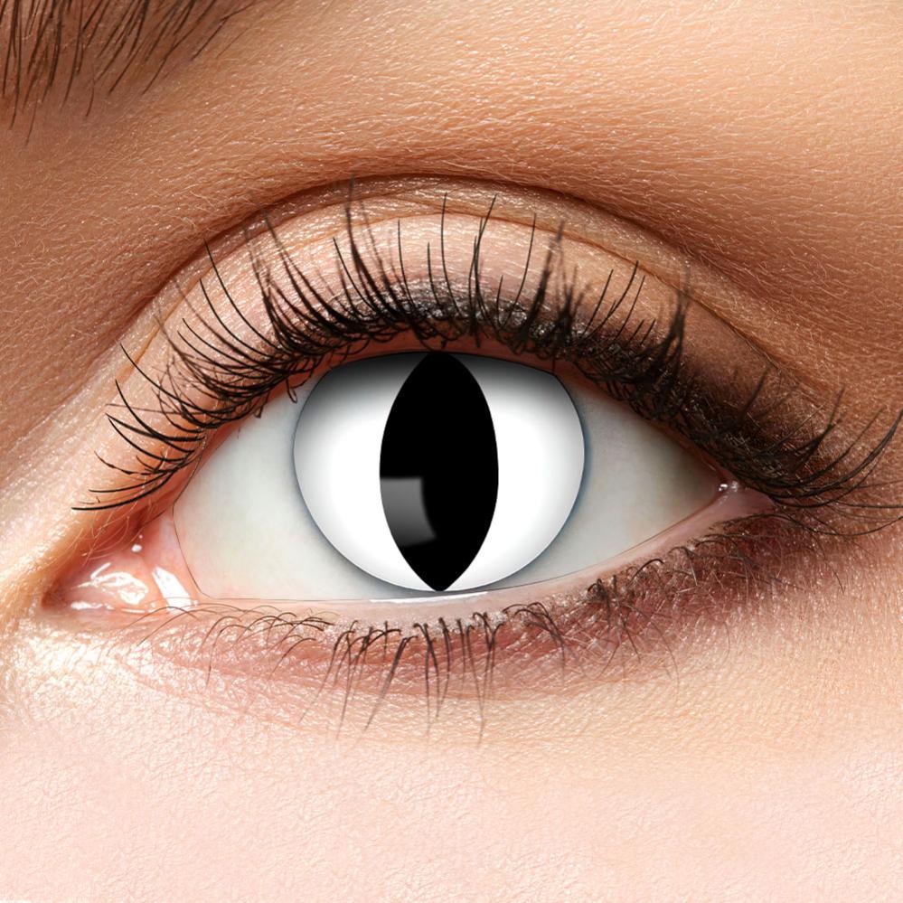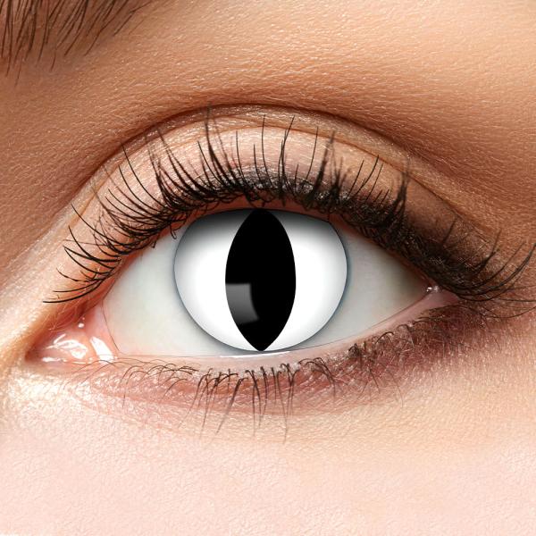 Fargede linser løfter raskt og enkelt hele din halloween utkledning samtidig som de får deg til å se virkelig kul ut. Disse halloweenlinsene kommer i hvitt med smale, svarte kattepupiller, noe som passer like godt til en søt kattekostyme som til en skummel heksekostyme. Rett og slett perfekte crazy linser for flere forskjellige antrekk!