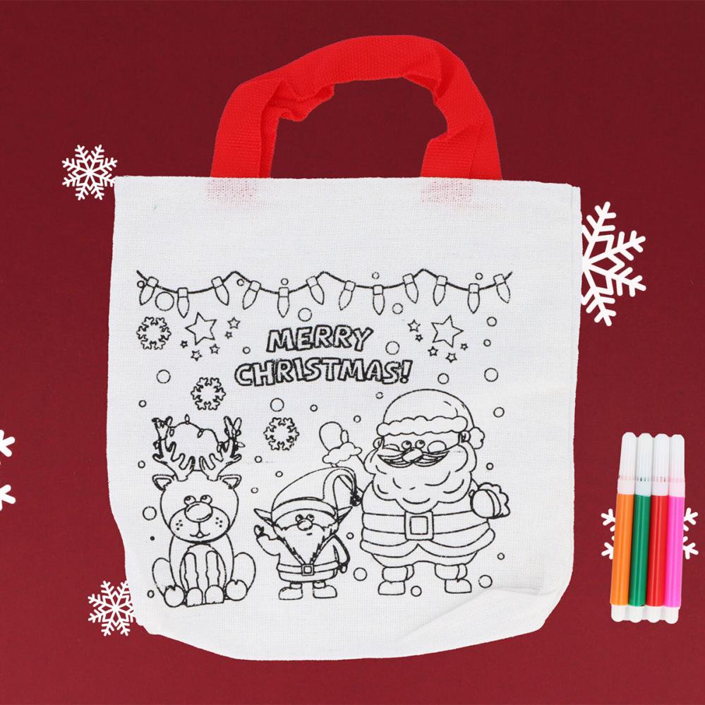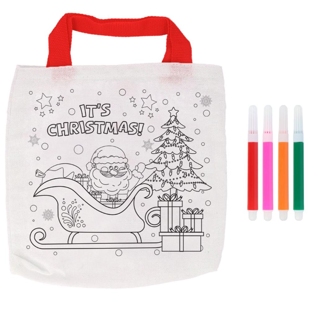 Fargelegg din egen stoffpose med dette morsomme julehobbysettet som barn kommer til å elske. Det er et perfekt DIY-julehobby der hver pose er en overraskelse. Mal din egen stoffpose med de medfølgende fargepennene eller dine egne favorittfarger.