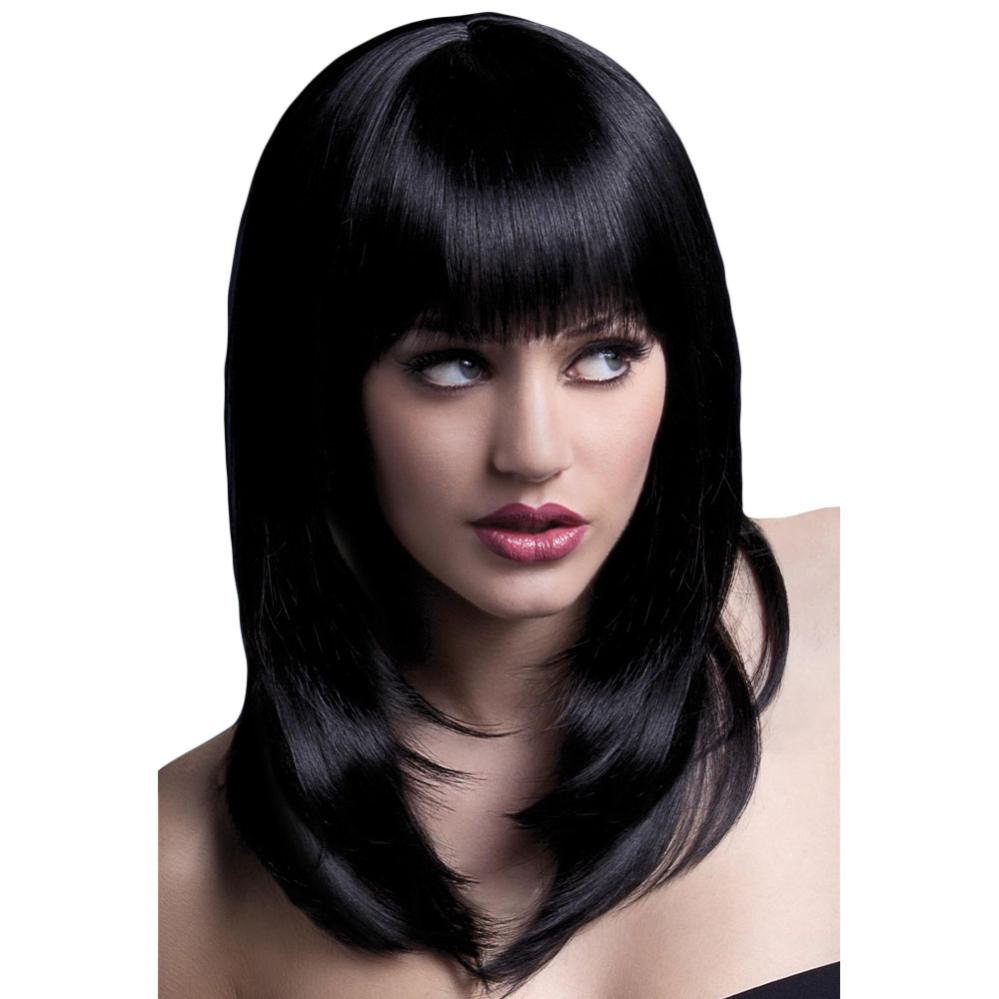 Gi looken din et løft med en svart parykk med lugg fra Fever Collections. Den varmebestandige syntetiske parykken gir deg friheten til å skape en naturlig parykkstil som passer både hverdag og fest.
