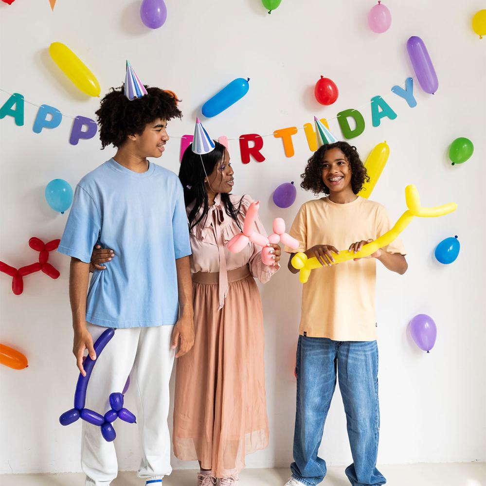 Figurballonger gjør modellering med ballonger til et lite sirkusnummer når selskapets tema er ballong og hele rommet fniser. Ballongfigurer i form av sommerfugler, hunder og blomster danser blant ballonger i fargemiks.
