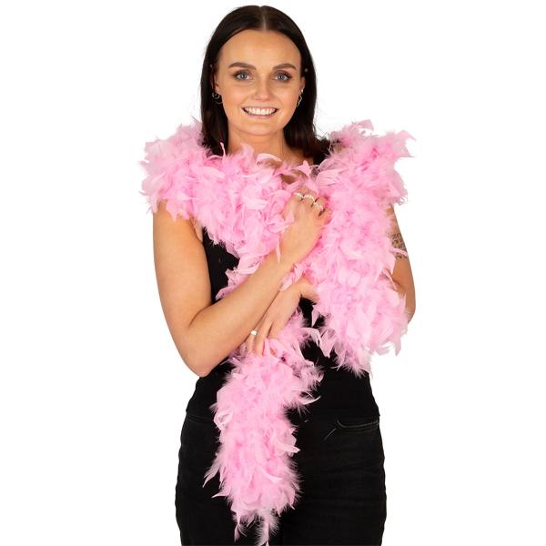Fjærboa Rosa 80g 180 cm er en fjærboa med rosa fjær.