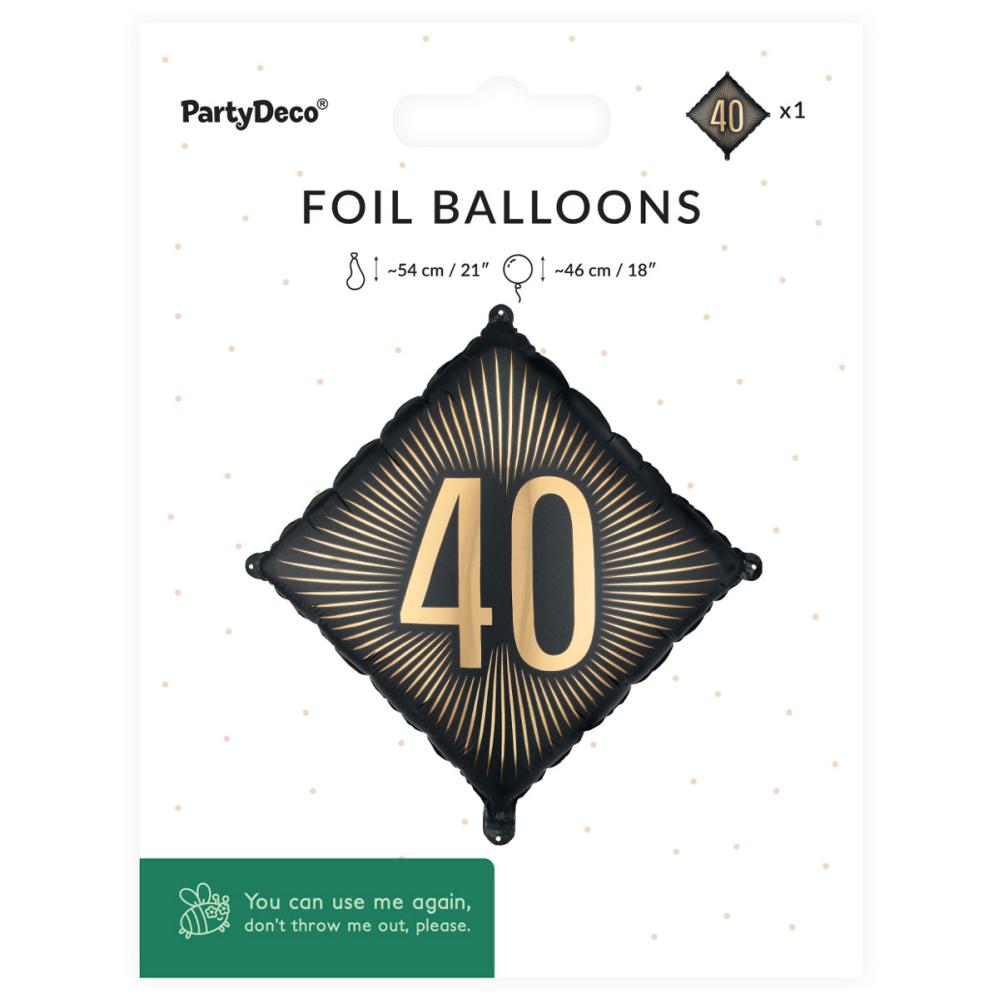 Som bursdagsballong er denne folieballongen for deg som fyller 40 år en ballong som gjør enhver bursdag mindre stillferdig. Til 40 års fest blir ballongen en dekorasjon i svart og gull som setter tonen med en gang.