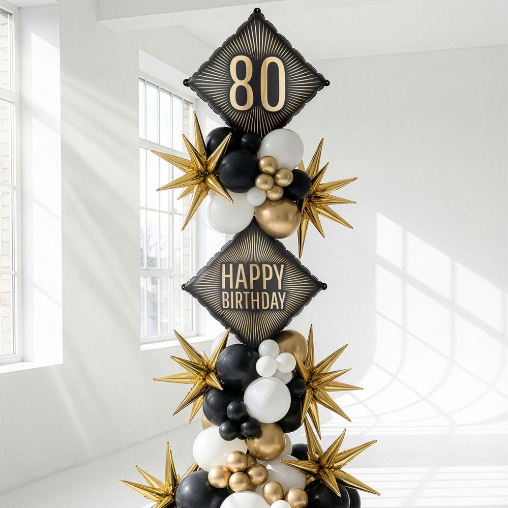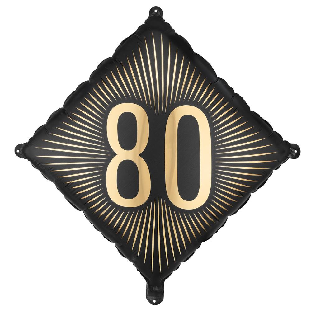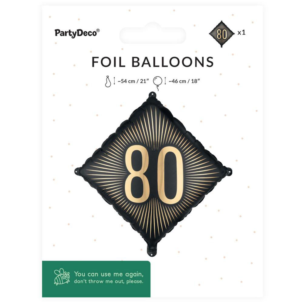 I svart og gull blir denne dekorasjonen til en 80 års fest en morsom bursdagsballong, en folieballong når 80 år skal feires og en stilfull ballong til enhver bursdag.