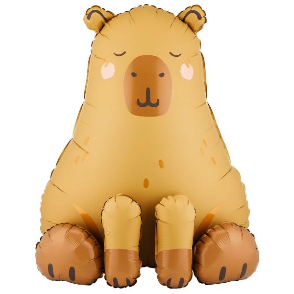 Folieballong Flodsvin Stående 63 x 80 cm er en ballong formet som et sittende flodsvin. Flodsvinet har en lysebrun kropp med mørkebrune føtter og rosa kinn. Ballongen fylles kun med luft og kan enkelt blåses opp med det medfølgende blåserøret eller med en ballongpumpe for raskere oppblåsing.