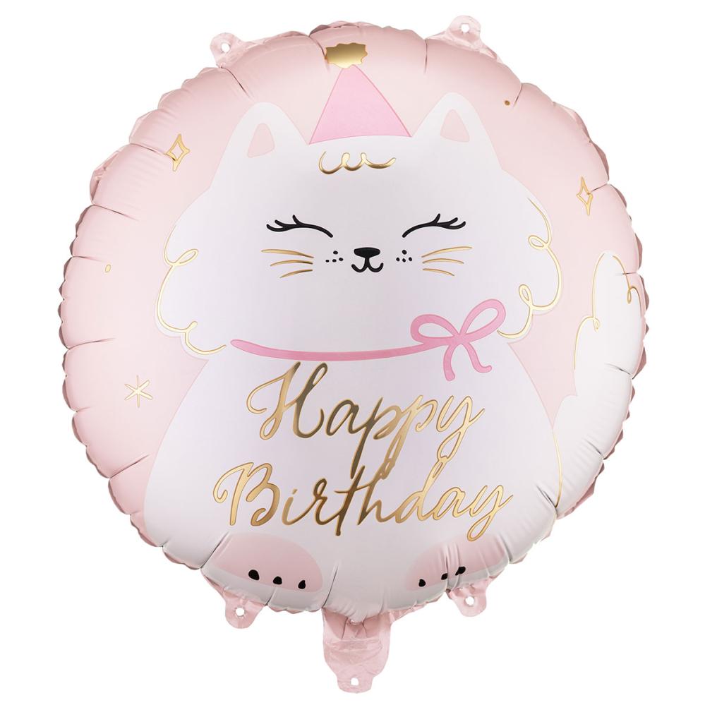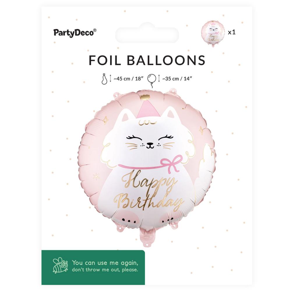 Denne bursdagsballongen er en katteballong som liver opp enhver bursdag, og i et selskap med dyretema blir denne runde ballongen med teksten Happy Birthday en leken folieballong.