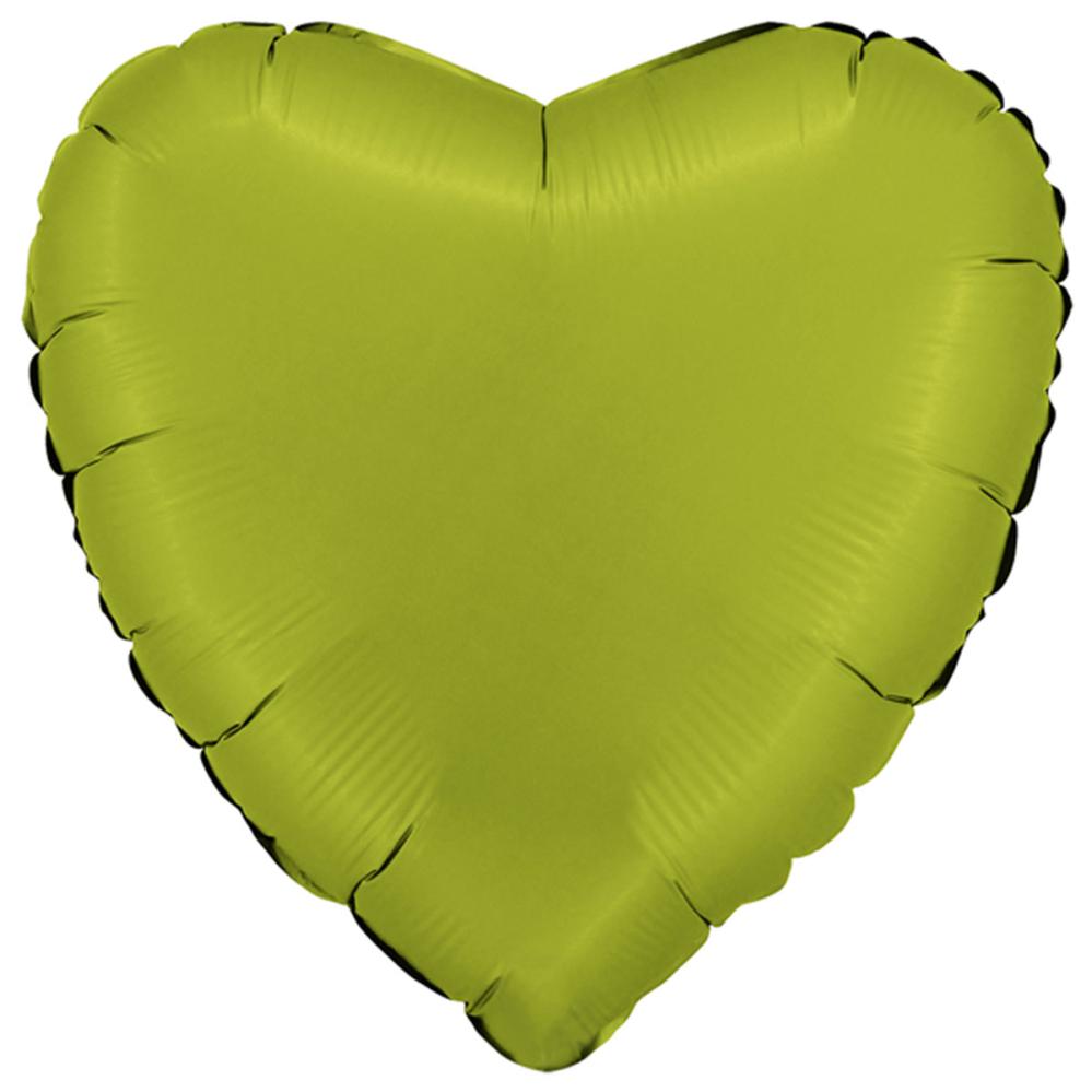 Folieballong Hjerte Satin Matcha Latte omfatter en hjerteformet folieballong i en grønn 'matcha latte' farge med satinnyanse.