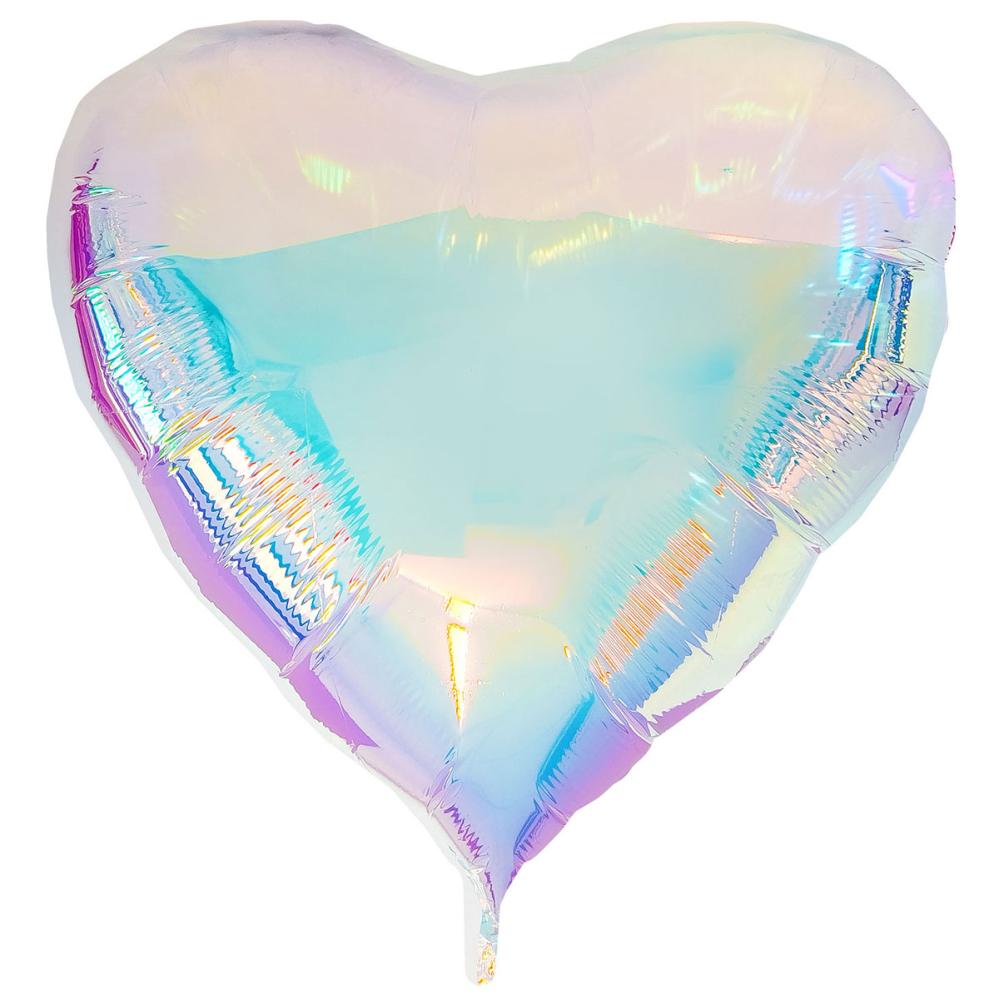 Folieballong Hjerte XXL Iriserende 103 x 107 cm er en folieballong formet som et stort regnbueskimrende hjerte. Ballongen henges enkelt opp med den praktiske opphengsfliken.