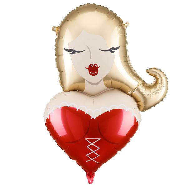 På Alle hjerters dag blir denne ballongen et sjarmerende blunk som får bordet til å smile. Som morsom dekorasjon på et utdrikningslag blir ballongen et lite sprell, og jentefiguren stjeler gjerne kveldens første latter.