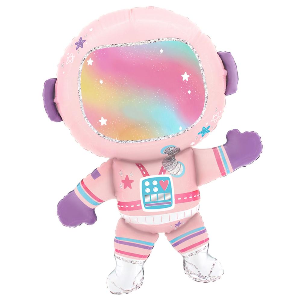 Gjør romfesten din enda festligere med en folieballong i form av en rosa astronaut. Den lyserosa drakten med lilla detaljer og det regnbuefargede visiret fanger blikkene. En perfekt astronautballong for hvert ballongelskende barn.