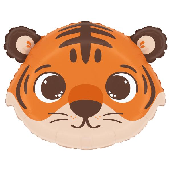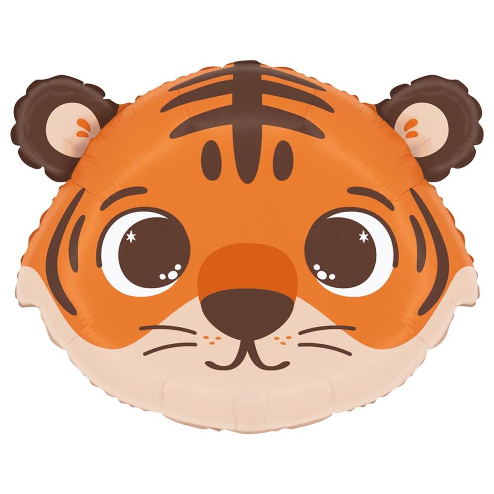 Folieballong Tiger 46x36 cm inneholder en folieballong formet som et søtt tigeransikt i oransje, beige og brune toner.