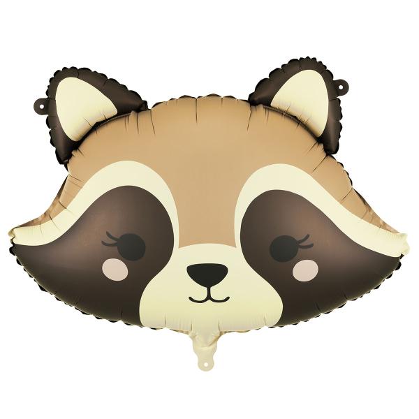 Folieballong Vaskebjørn 59 x 39 cm er en folieballong formet som et søtt vaskebjørnansikt i brunt og kremfarget. Den kan fylles med luft eller helium og leveres med et sugerør for oppblåsing.