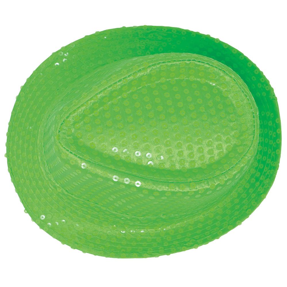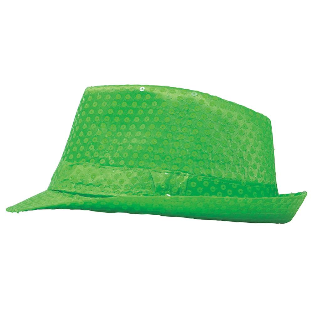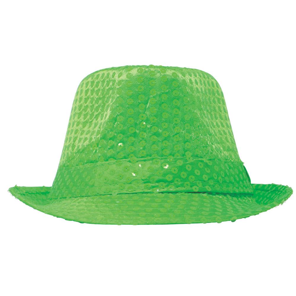 Gangsterhatt med Paljetter Neongrønn omfatter en neongrønn gangsterhatt med paljetter.