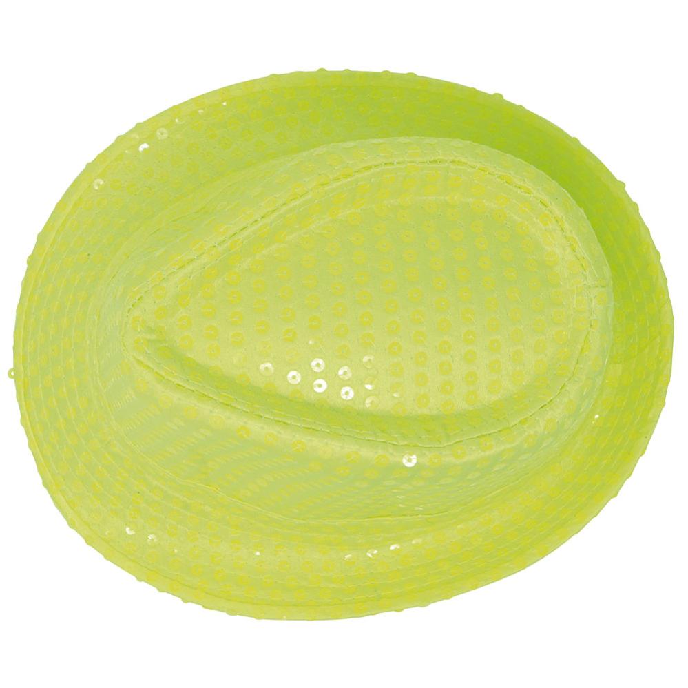 Gangsterhatt med Paljetter Neongul omfatter en neongul gangsterhatt med paljetter.
