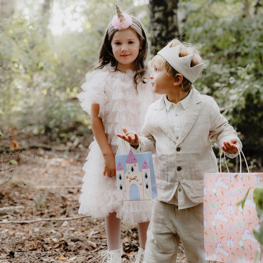 Barna setter pris på en gavepose med motiv av et slott, spesielt når den passer perfekt til prins- og prinsessebursdag der fantasifulle leker får utfolde seg. Ved en prinsessebursdag blir temaet komplett med riktig gavepose. Dette tilbehøret passer også utmerket når bursdagen har et klassisk prinsessetema.