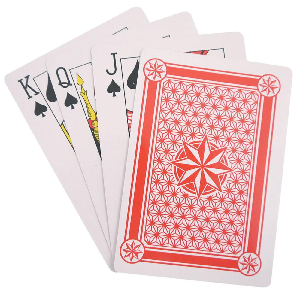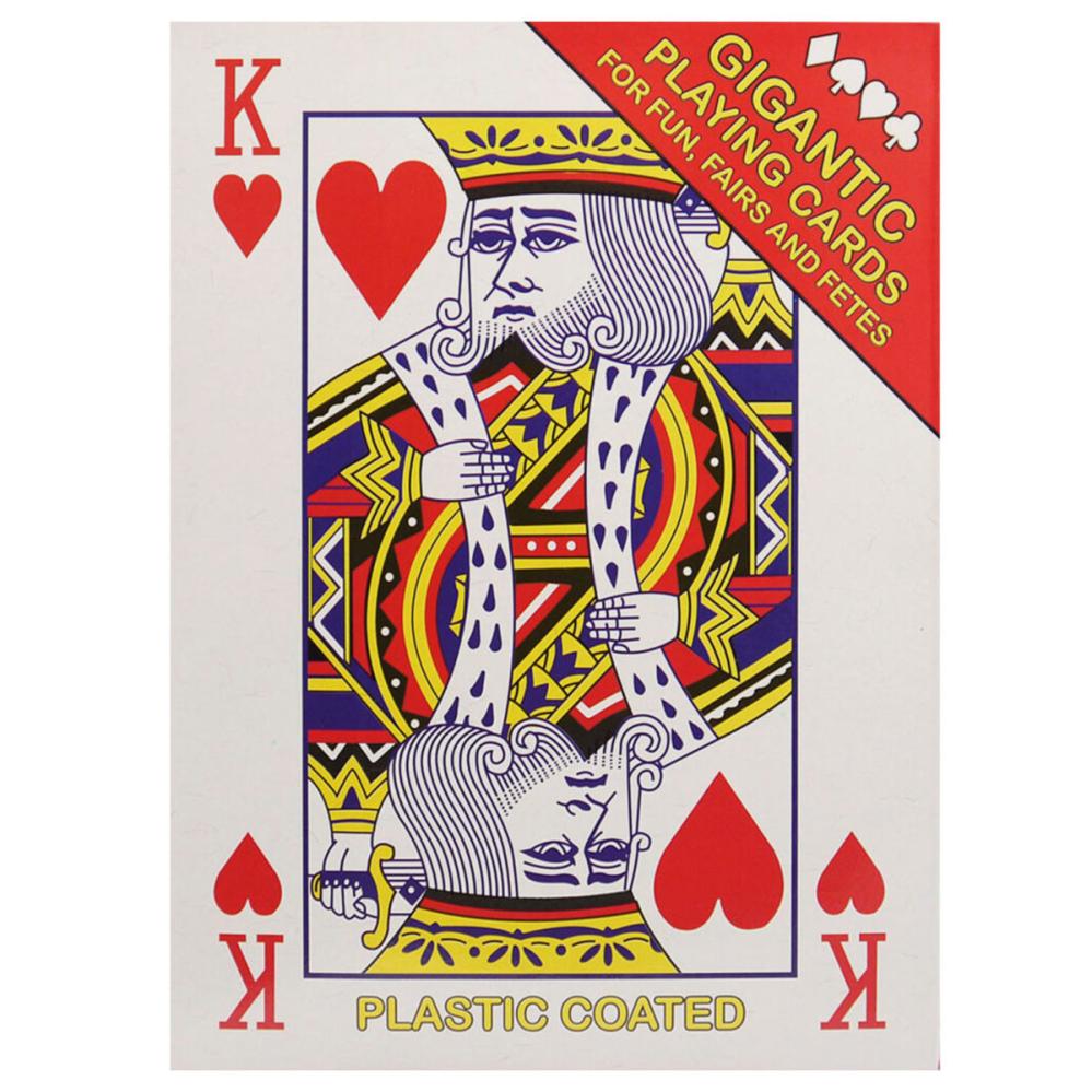 Gigantiske Spillekort 54-pakning er en pakke med 54 stk. gigantiske spillekort av papir med plastoverflate.