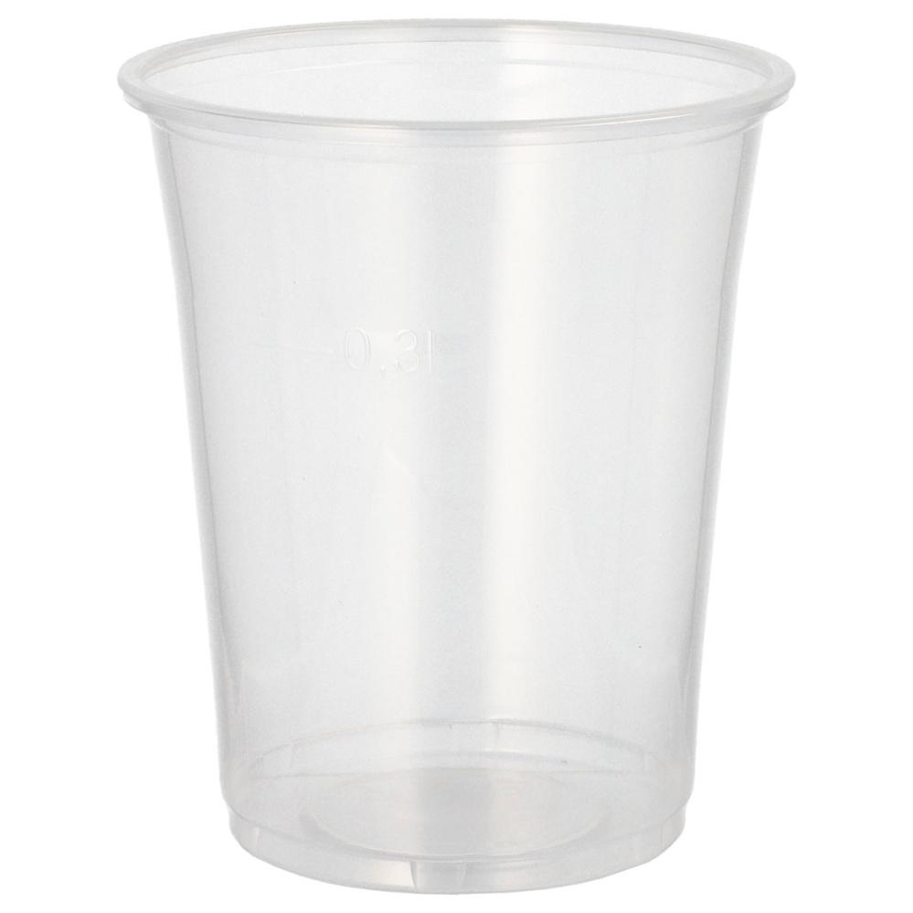 Disse er gjenbrukbare og fungerer som robuste plastglass som rommer 30 cl for servering av kald drikke. Hvert beger er laget av plast, kan stables og tåler oppvaskmaskin for enkel rengjøring ved gjentatt bruk.